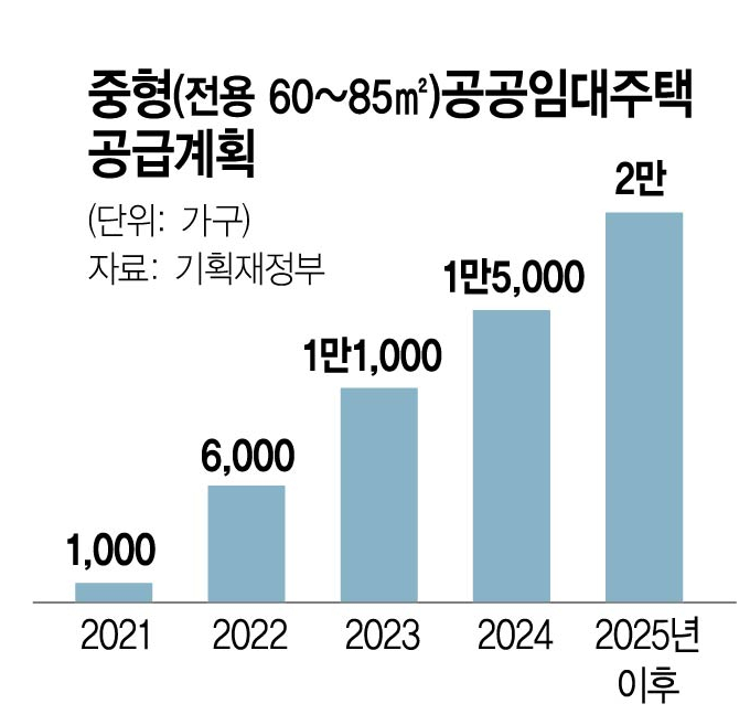 하지만 2020년 11ㆍ19 부동산 대책 이후 사업승인을 받은 통합공공임대주택의 경우에는 전용면적 85㎡ 미만의 중형 평형도 공급이 가능해졌기 때문에 추후 공급물량에서는 3∼4인 가구에서 선호되는 중형 평형(전용면적 60∼85㎡)을 포함시키고, 한국토지주택공사에 의하면 매년 통합공공임대주택의 중형 평형의 비중 역시 높여나갈 방침입니다.